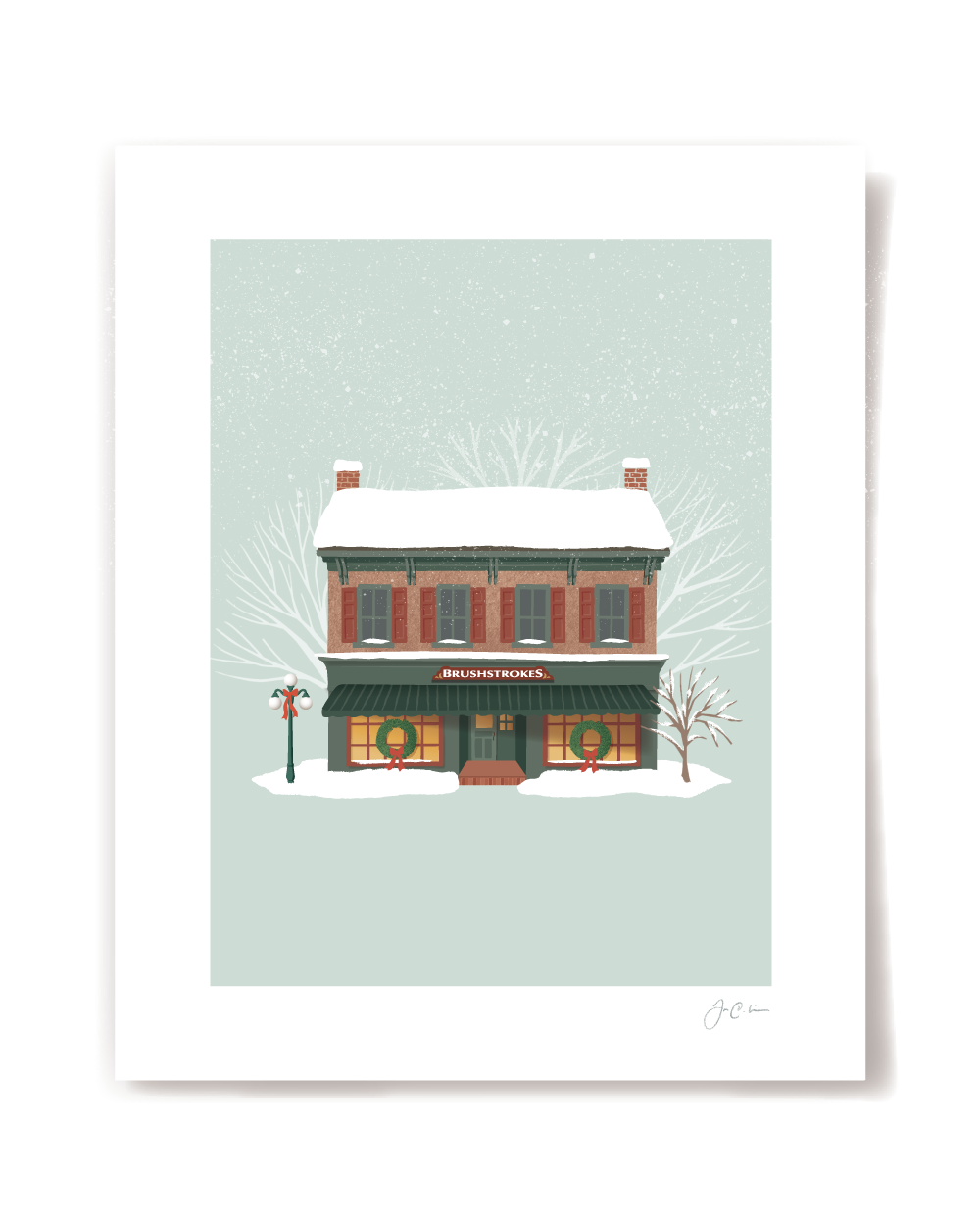 On the corner of Market and 4th Street, this art print is an original illustration of the beloved Brushstrokes Art store in charming town of Lewisburg, Pennsylvania.