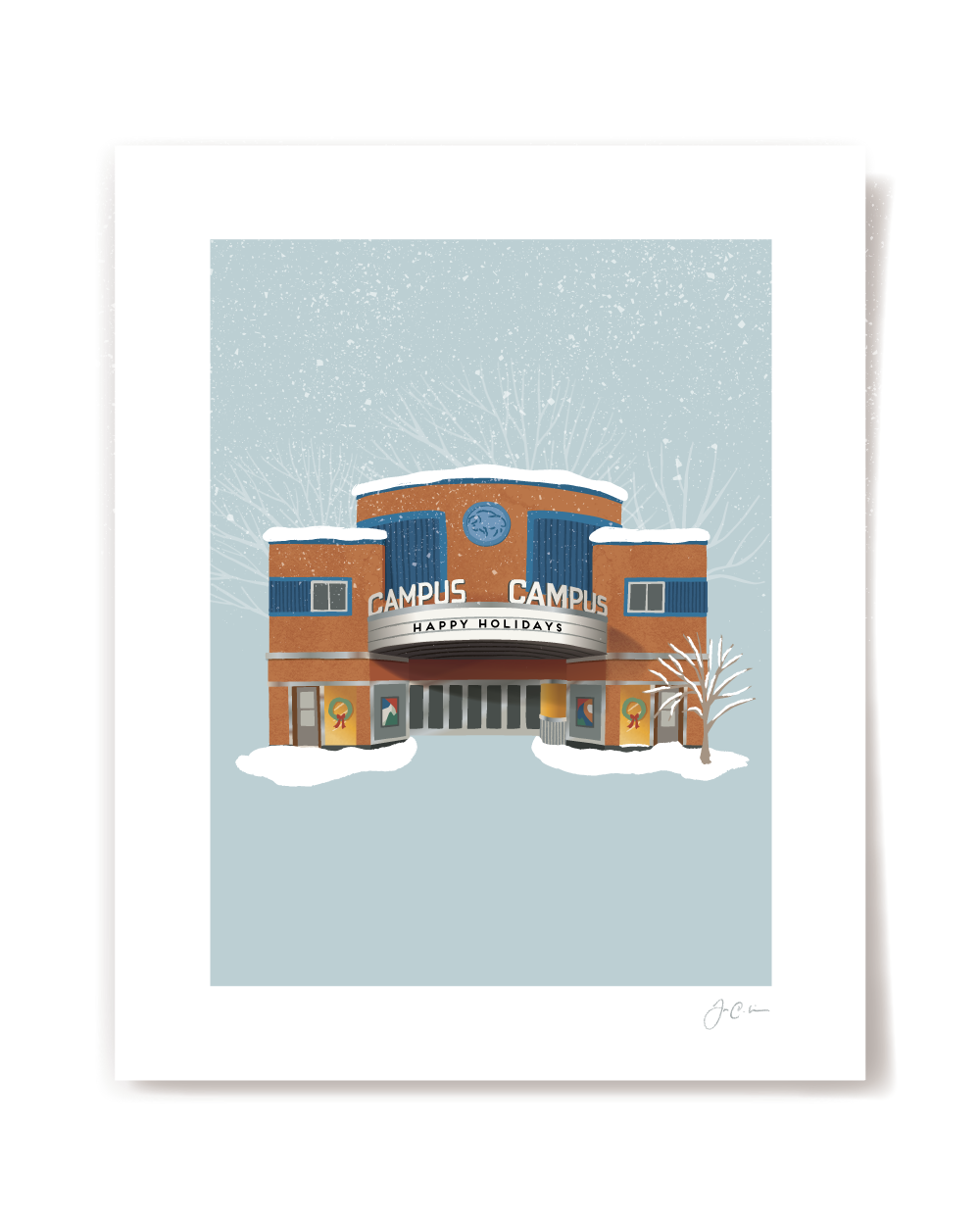 An original illustration of the iconic, art deco Campus Theatre in the heart of Lewisburg, Pennsylvania. A perfect gift for anyone who has called this beautiful town home!