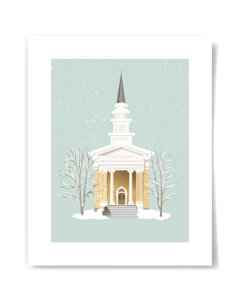 A charming illustration of the First Presbyterian Church on Market Street in Lewisburg, Pennsylvania. Makes for a lovely housewarming gift, buy one for yourself and one for a gift!