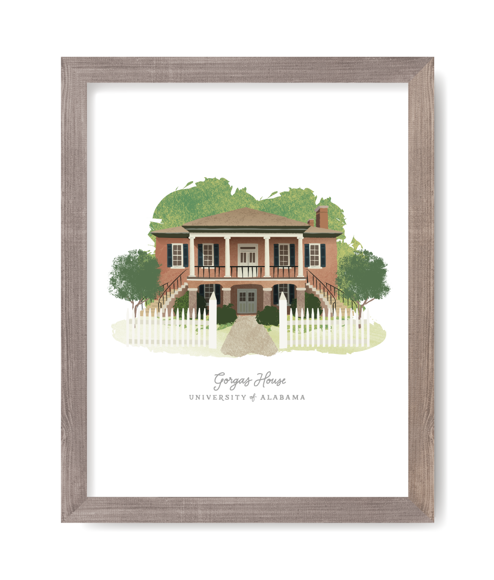 This original illustration features the historic Gorgas House at the University of Alabama.