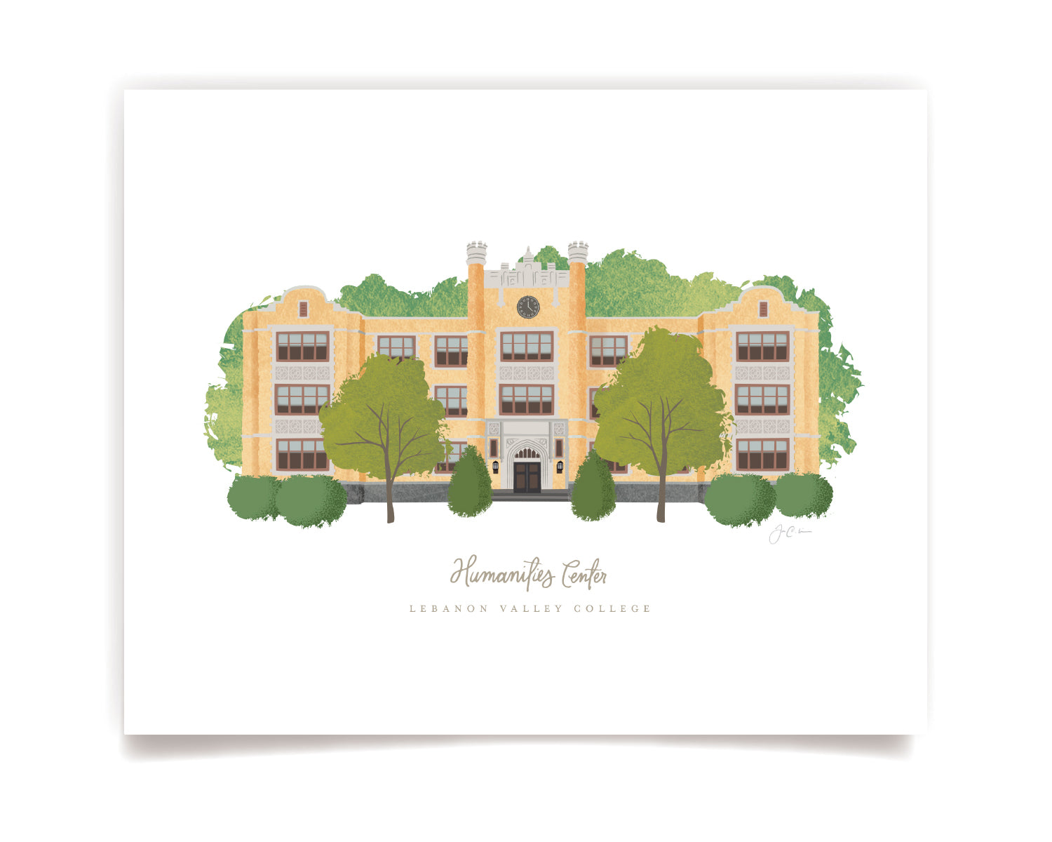AN original illustration of the Humanities building located on the campus of Lebanon Valley College in Annville, PA. (Frame not included)