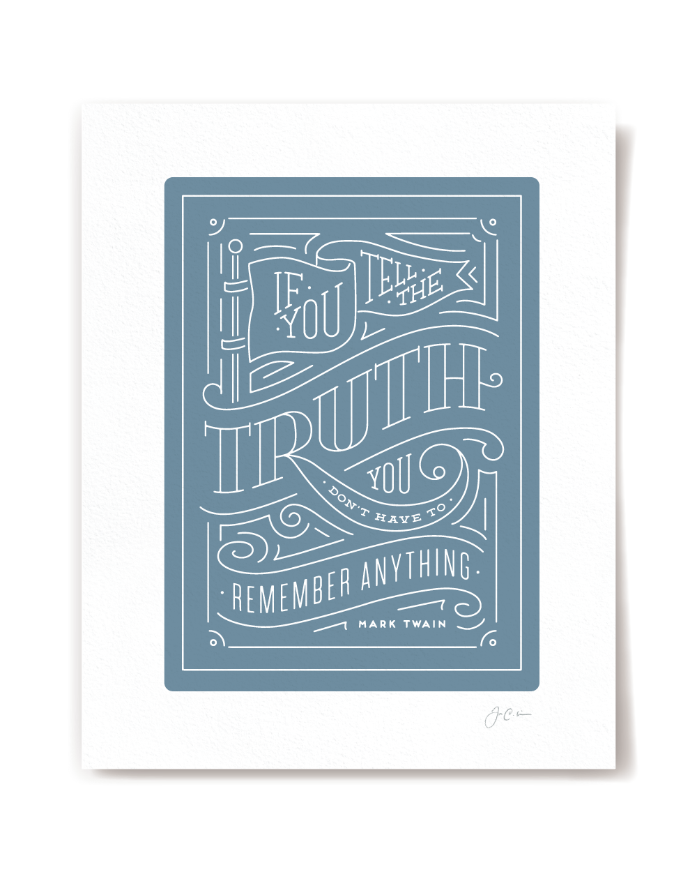 A fun, custom lettered print featuring this noteworthy quote from Mark Twain.